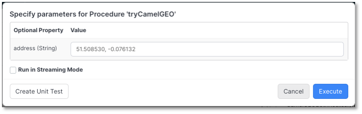 PROCEDURE tryCamelGEO(address String)